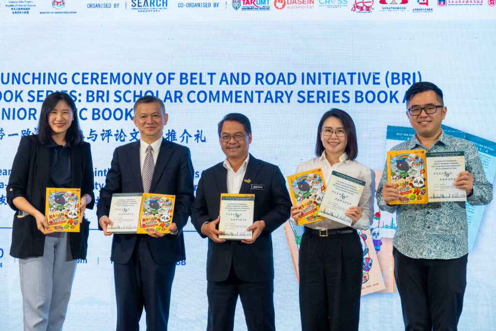 In celebration of the 50th anniversary of diplomatic relations between Malaysia and China, a grand launch event for the new Belt and Road book series was held in Kuala Lumpur. The event received strong support from Malaysia’s Ministry of Higher Education, the Embassy of the People’s Republic of China in Malaysia, and other institutions. It was organized by the Southeast Asia Research Centre for Humanities (SEARCH) and co-organized by Tunku Abdul Rahman University of Management and Technology (TAR UMT), Dasein Academy of Art, among others. Leaders from government, business, and academia gathered to witness this significant occasion.